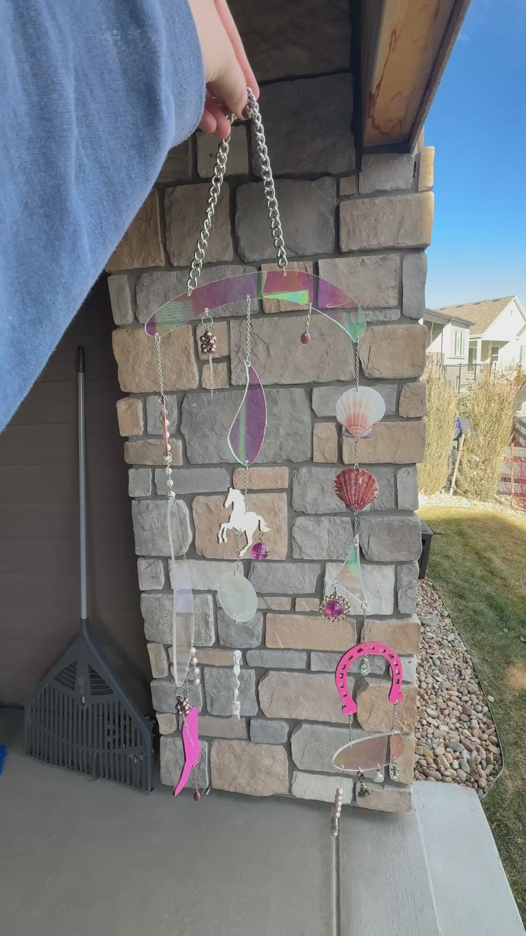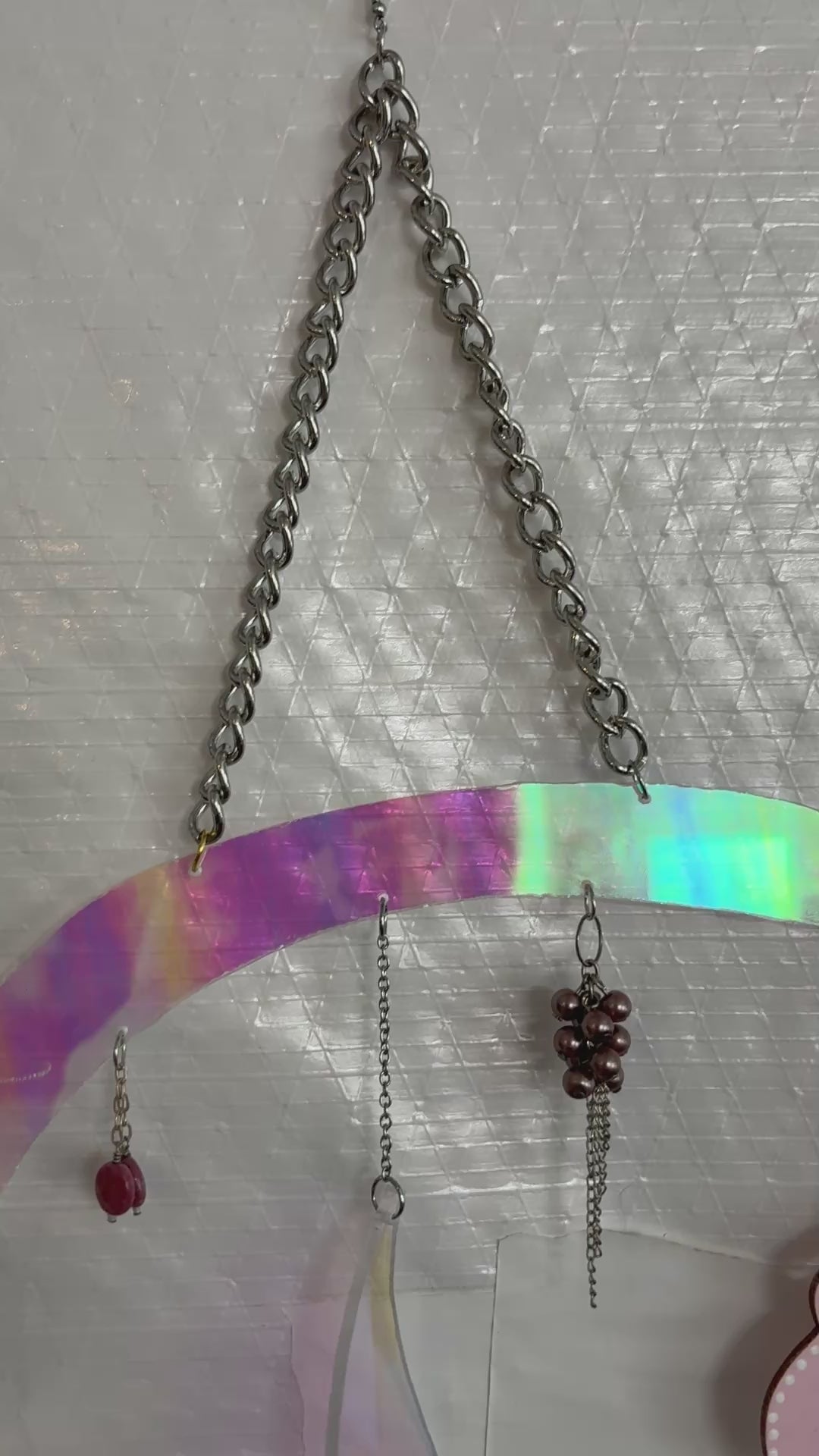 IM GONNA KEEP ON DANCIN !!! a perfectly pink work of art! complete with freshwater pearls, vintage beads and charms, real shells, and hand painted wood carvings. the acrylic was hand cut my by dad too!
